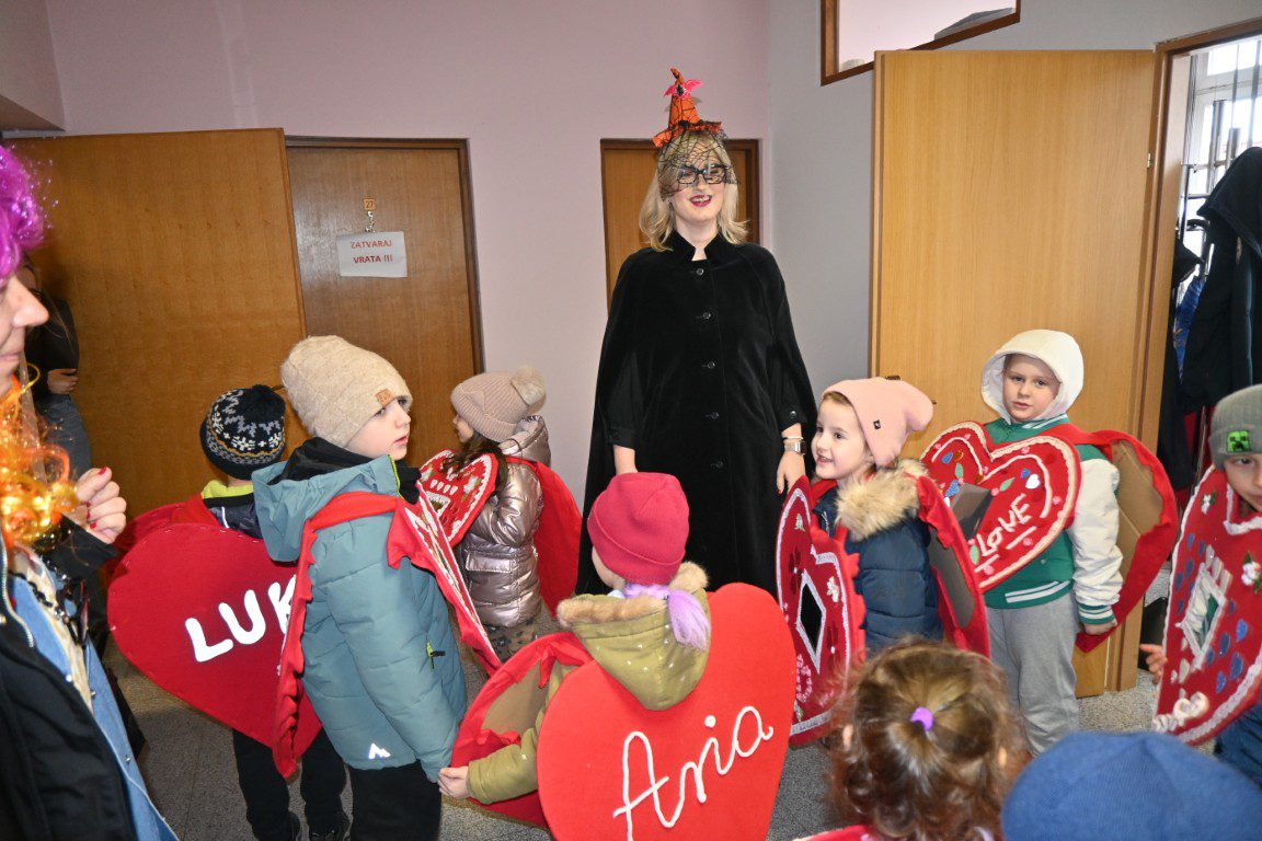 Veselu povorku mališana primila je zamjenica gradonačelnice Tea Rambovsek Aleksić, srdačno ih pozdravila i, kako i priliči maškarama, počastila krafnama. Uz pjesmu, smijeh i razdraganu graju, male maškare unijele su vedrinu i razigranost u uobičajenu radnu atmosferu Gradske uprave te svima uljepšale prijepodne.