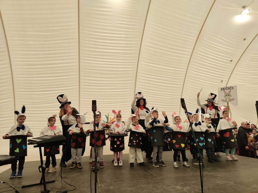 Raznovrsne točke, od plesnih nastupa do zborskih izvedbi, ispunile su dvoranu veselom atmosferom i pokazale bogatstvo dječje kreativnosti i talenta.