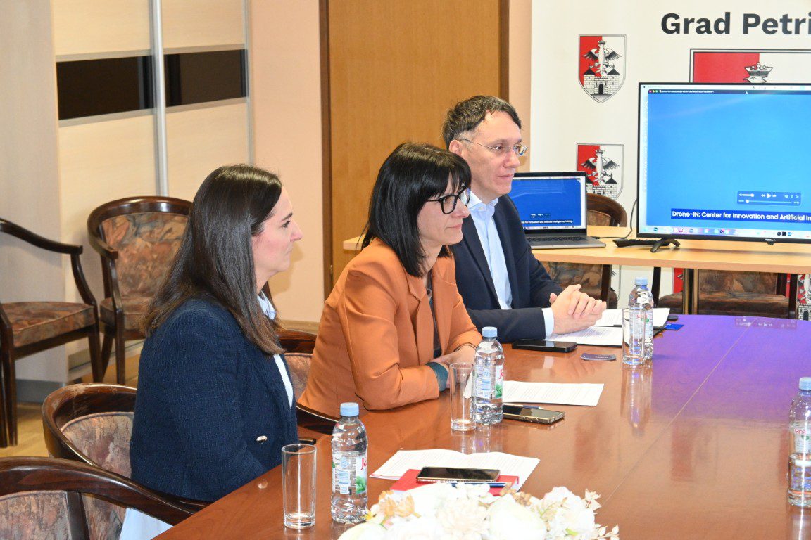 U drugom dijelu sastanka projektni tim predstavio je razvojni projekt Drone IN Centar za inovacije i umjetnu inteligenciju. Voditelj projekta Karlo Dževerlija pojasnio je planirane kapacitete i namjenu budućeg centra, dok je ravnateljica PETRA – Petrinjske razvojne agencije, Katarina Ivančić, detaljnije izložila program šestomjesečne edukacije za programere bespilotnih letjelica, radionice u školama te kompetencije koje polaznici stječu tijekom programa.