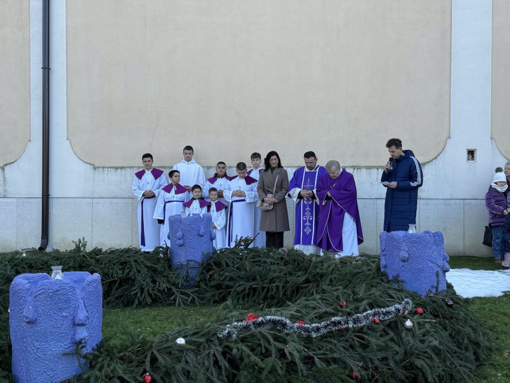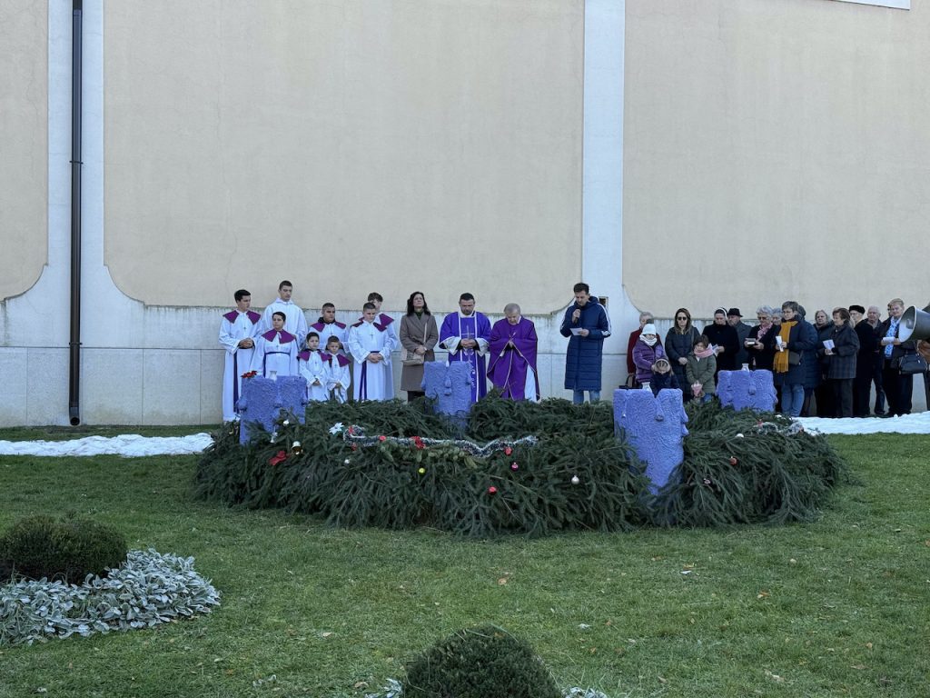 Nakon misnog slavlja, uz molitvu i adventske marijanske pjesme, vjernici su se okupili u petrinjskom Gradskom parku, gdje je, uz crkvu sv. Lovre, simbolično upaljena prva svijeća na velikom adventskom vijencu.